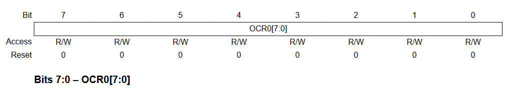 OCR0 = i; // 이 값으로 PWM의 Duty Cycle을 설정할 수 있다.