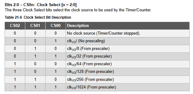 > 1. TCCR0 (Timer/Counter Control Register 0) : 타이머0 설정
