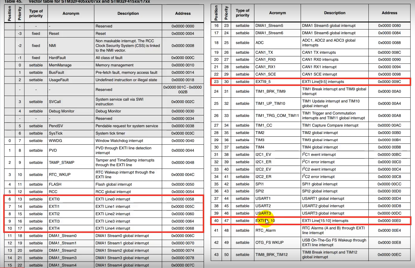 EXT5~9, EXT10~15는 하나의 IRQHandler() 함수로 묶여서 호출된다.