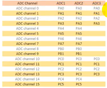ADC1 -> IN9, IN10, IN12, IN13